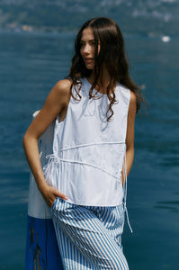 Adjustable tie sides and asymmetric gathering create a flattering draped effect that feels modern and effortless. The keyhole back keeps things playful and fresh. It’s an easy outfit win — just add denim and go.