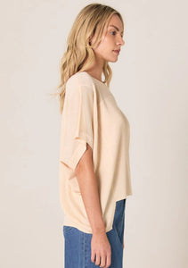 The Esther Knit Top is an elevated essential with a soft, draped silhouette. Cut with short sleeves and a subtle high–low hem, it falls with effortless ease. The lightweight knit lends a refined finish that layers beautifully or stands alone. A classic piece designed to feel understated and sophisticated.
