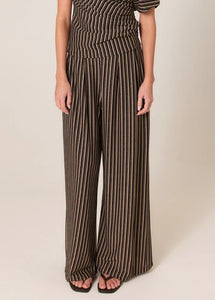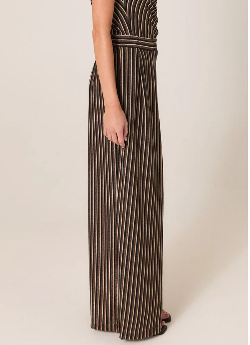 The Everlyn Metallic Jersey Pant is a refined pull-on style in metallic stripe jersey. Designed with a comfortable elasticated waist for effortless wear. The wide-leg cut and soft drape create an elevated, elongated silhouette. A sophisticated set-piece that still feels easy and elegant.