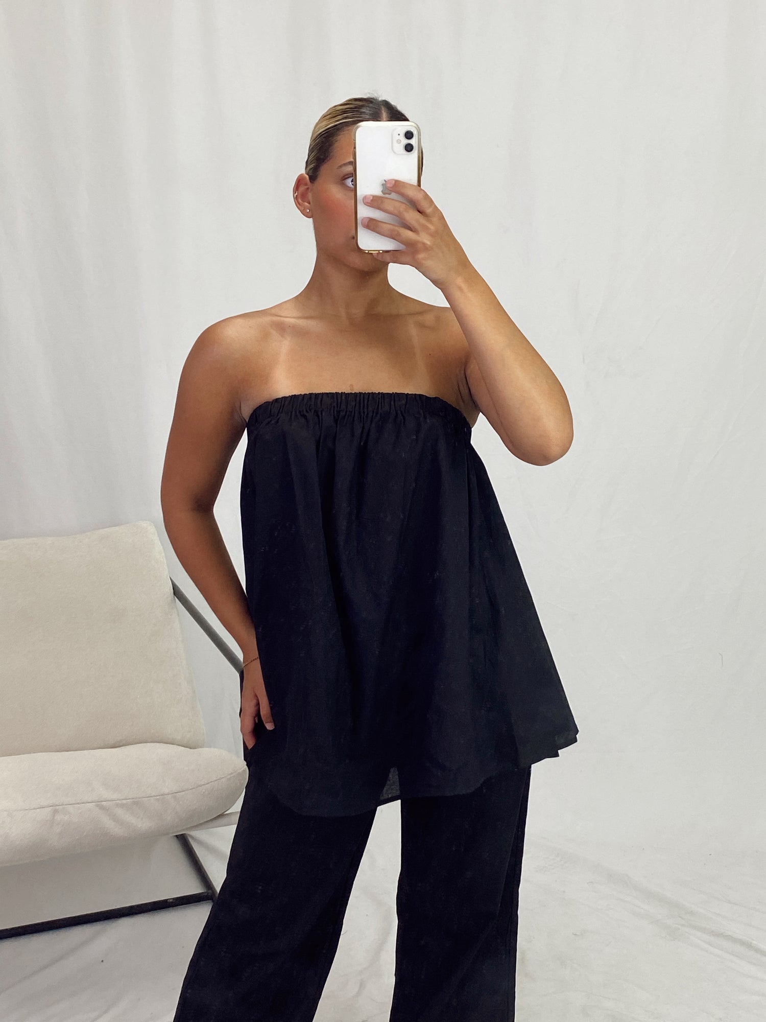 Black set with matching pants with elastic waist
