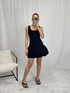 Black bubble dress with tie back detail.