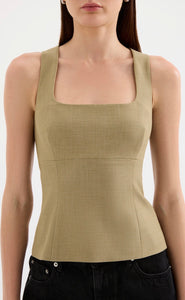 The Thea Top is crafted with a mid weight tailoring fabric and has a smooth, structured hand feel. Designed with a square neckline and fitted bust, this top features a high back with invisible zipper, shaping through body and finishes hip length.