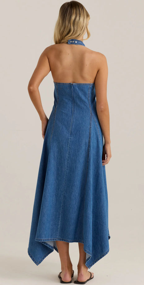 Designed to move with you, this halter dress features princess seams for shape and a flowing handkerchief hem that brings a touch of drama. The multi-setting neck strap allows you to customise the fit, while the sleek zip closure keeps everything polished. A standout piece made for making memories.