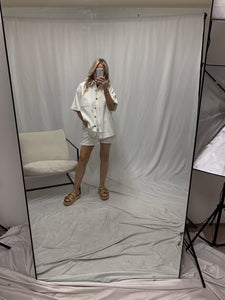 Creme short set with Brown stitching