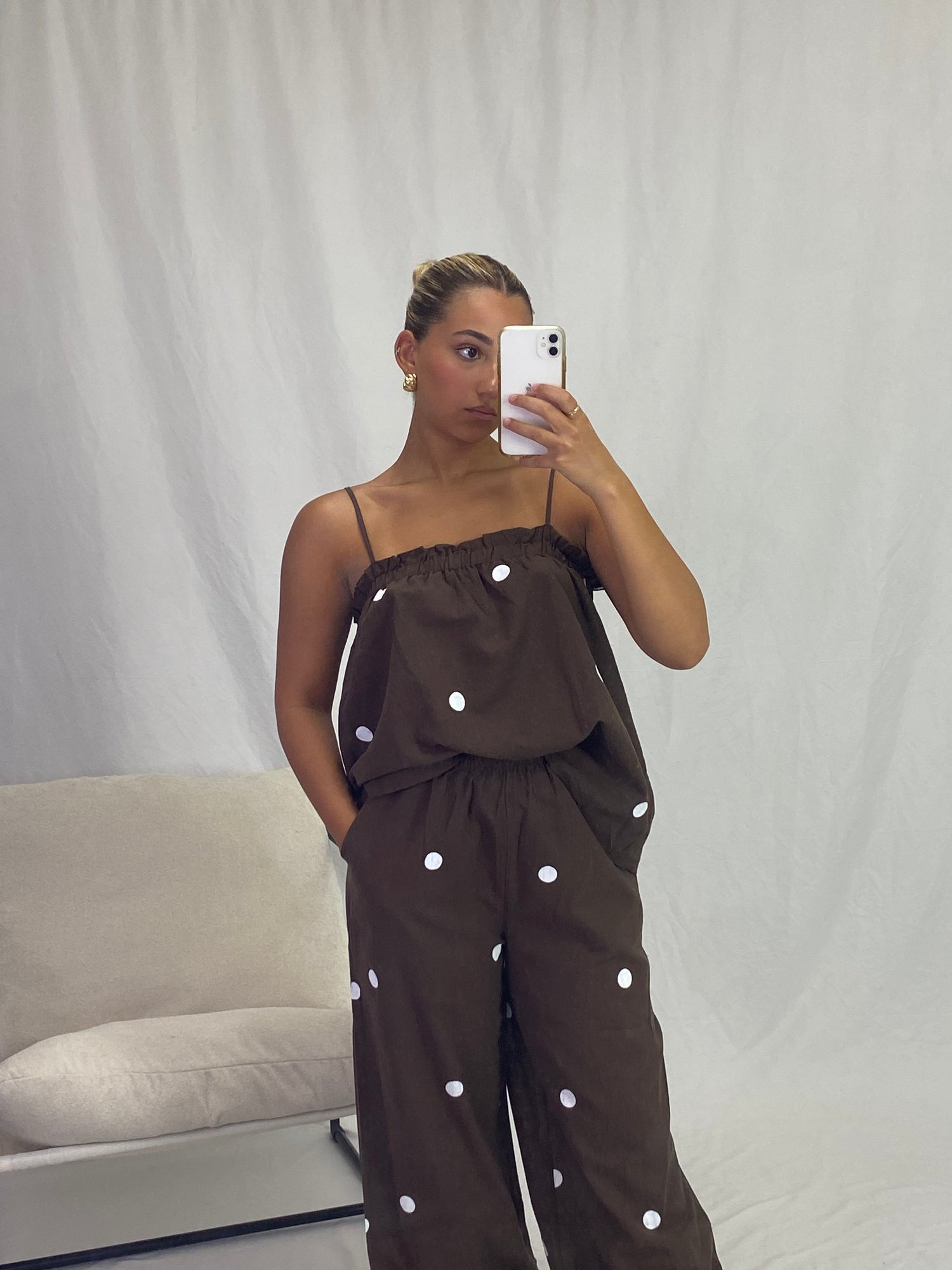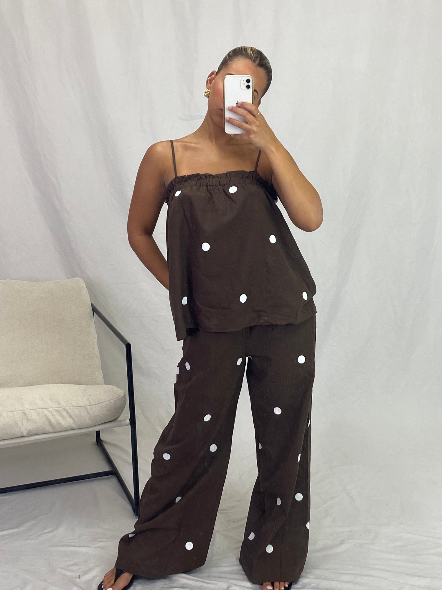 Brown polka dot set.
