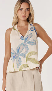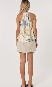 The Anthea Tank is simplicity refined. Designed in our exclusive print with a halter V-neckline, it offers a clean, elegant silhouette. Perfect for layering or paired with its coordinating pieces. A modern essential with effortless sophistication.