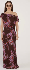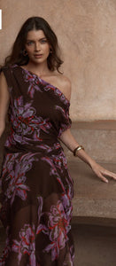 The Margo One Shoulder Dress is an elevated study in asymmetry. Featuring an exclusive floral print, it drapes effortlessly through a full-length silhouette. Subtle gathering at the waist creates refined shaping. A sophisticated trans-seasonal piece designed for modern occasion wear.